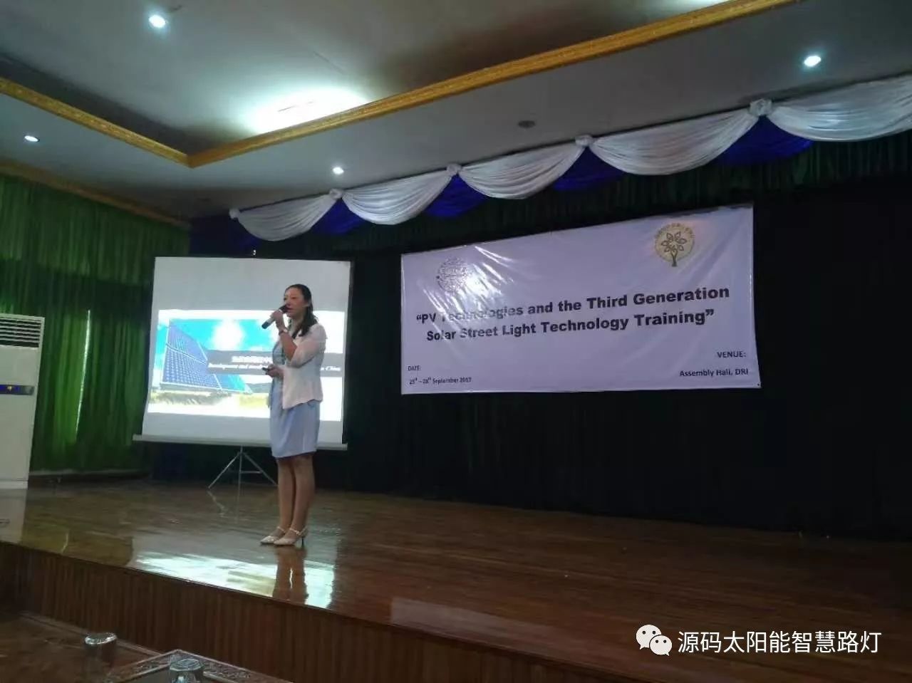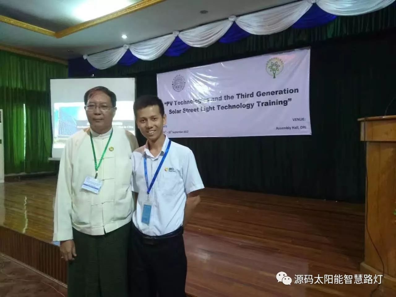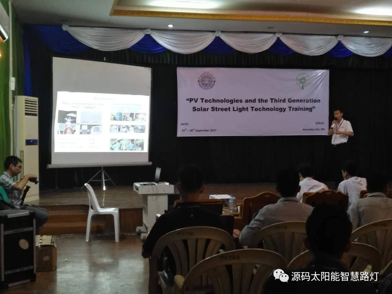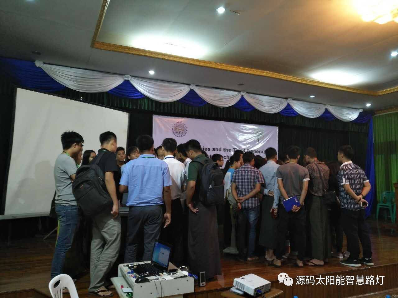 9月25日-9月28日,在云南省人民政府和云南省商務(wù)廳支持下,由云南省綠色能源行業(yè)協(xié)會和緬甸教育部舉辦的光伏應(yīng)用技術(shù)培訓會在仰光順利召開,此次會議的目的旨在加強中緬兩國的光伏應(yīng)用技術(shù)交流,展示先進的光伏應(yīng)用產(chǎn)品,為兩國的光伏技術(shù)提升營造一個良好的契機。其中源碼太陽能智慧路燈代表行業(yè)目前最先進的光伏應(yīng)用技術(shù)與產(chǎn)品, 被作為培訓嘉賓邀請參到此次會議做相關(guān)技術(shù)的講解與交流。