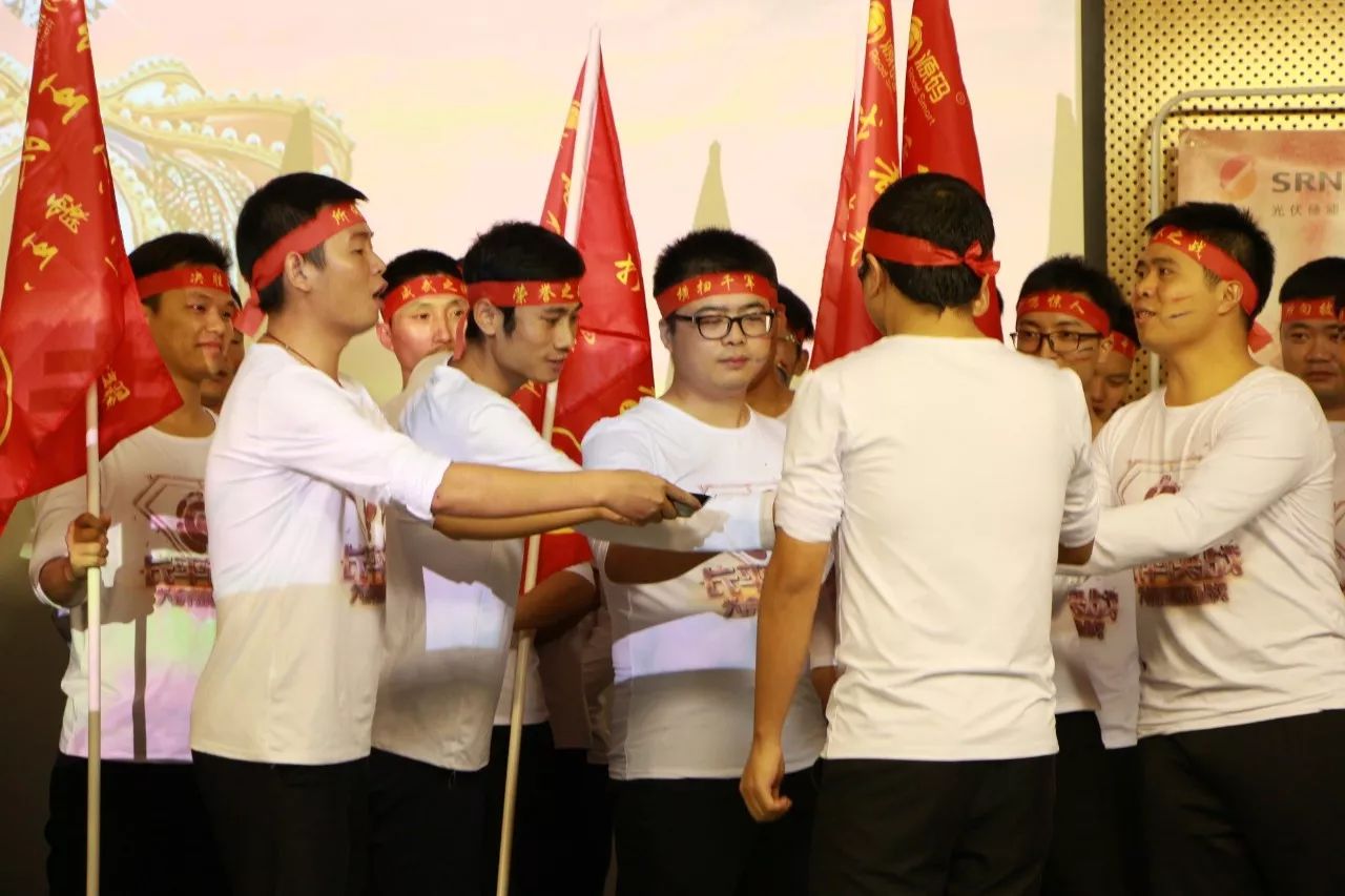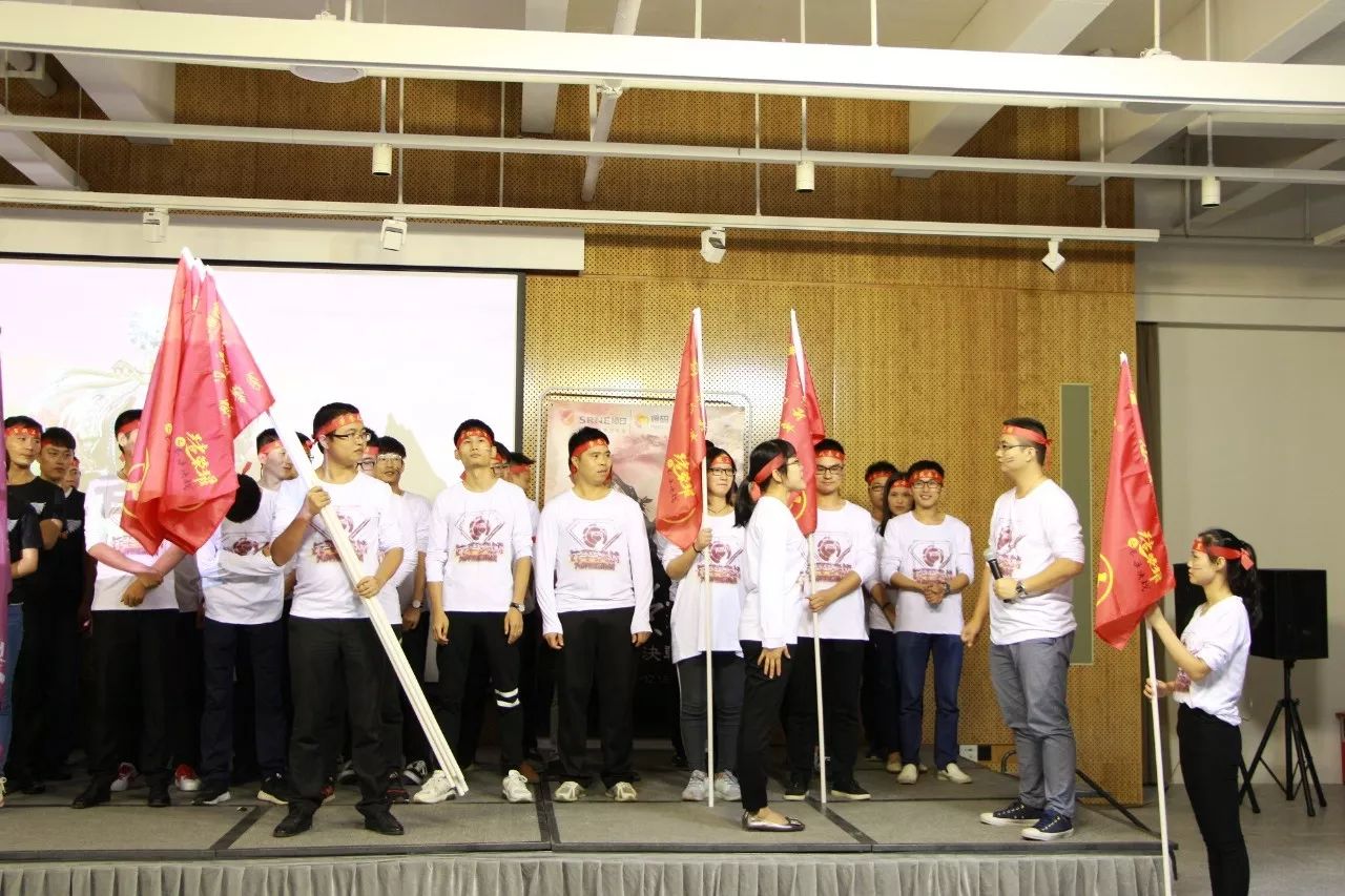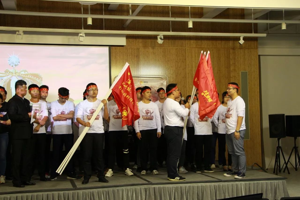 在呼喊公司活動口號的環節,每個部門,每個戰士都在高喊口號,喊得嗓子都已沙啞:風起云涌,鷹擊長空,人人銳士,唯我稱雄!殺!殺!殺!在內外貿主管整隊授旗環節,兩位主管情緒異常高亢,聲音都已經在顫抖,可是那顫抖的聲音卻振徹會場,激勵士氣,嚇破敵膽。在兩位軍團長情緒的渲染下,各個隊長也表現出大無畏的誓死精神,接過隊旗,喝下“壯士斷腕”一般的軍令酒,驕傲的在會場揮舞自己隊伍的旗幟。